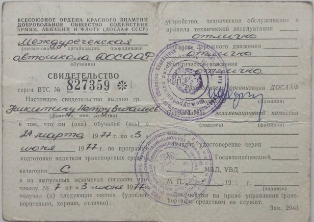 Свидетельство ДОСААФ СССР - Пётр Никитин.jpg